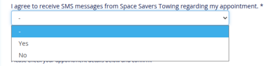 SMS Opt-In Process for Space Savers Towing